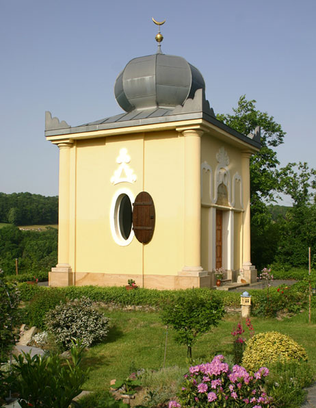 Der Pavillon steht an der Hangkante zwischen Maxen und Mühlbach. Er ist nur zu Fuß erreichbar – von Mühlbach (Station der Müglitztalbahn) über die Fußgänger-Holzbrücke Stufen hoch, links halten Richtung Maxen oder direkt von Maxen über den Winzerweg.